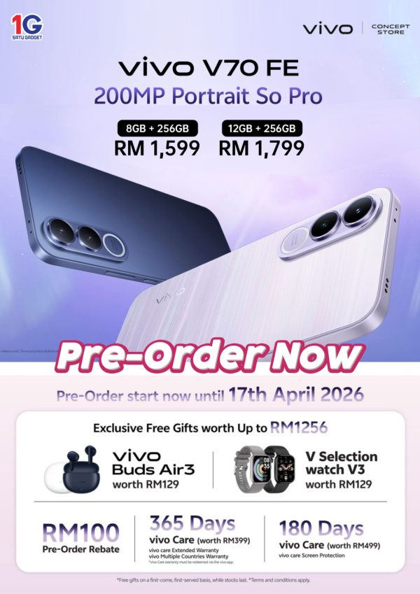 Vivo V70 FE | 8GB + 256GB/12GB + 256GB – Original Malaysia Set [Pre Order Now ETA : 17th April 2026] – Satu Gadget Sdn. Bhd.
